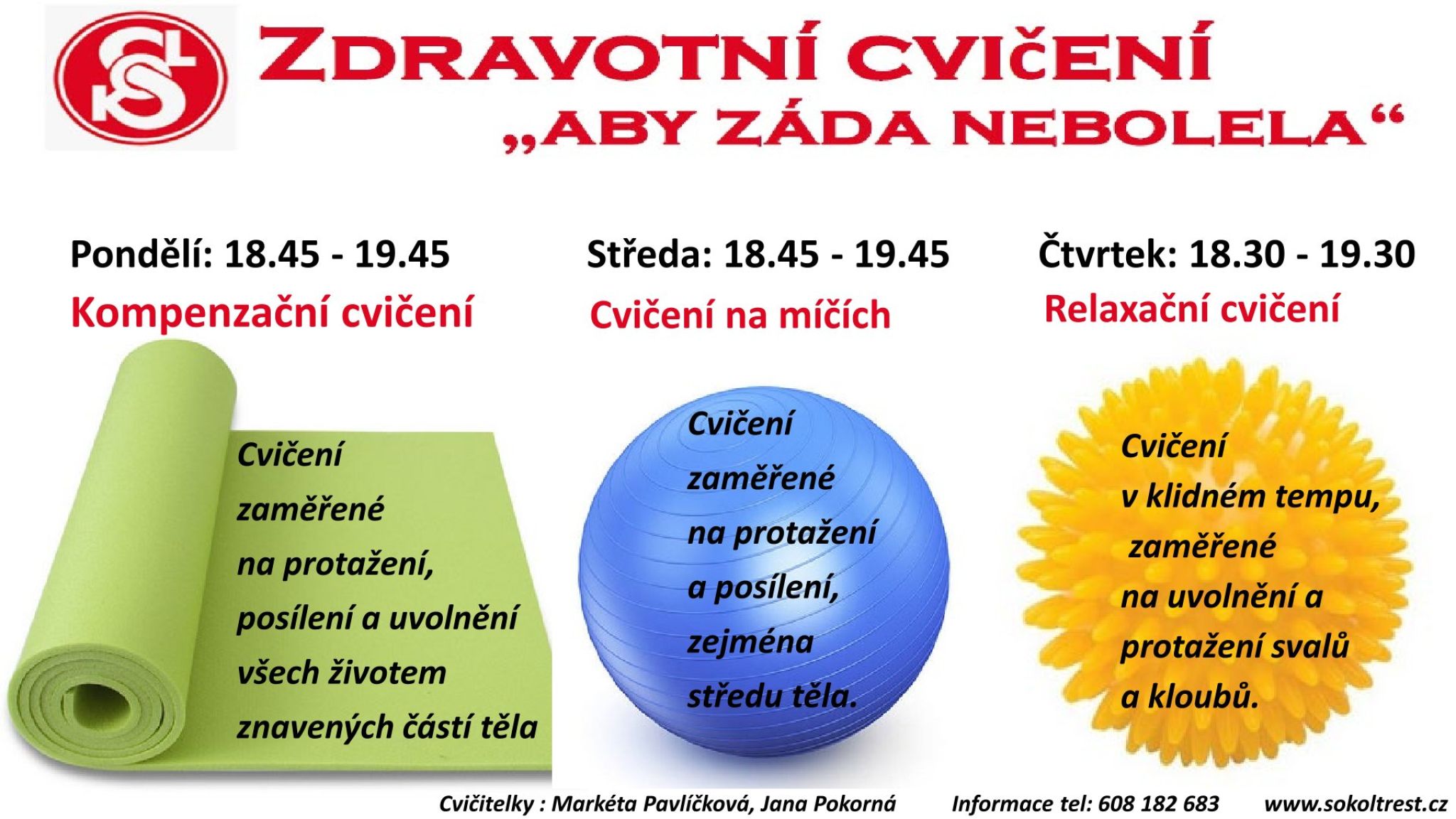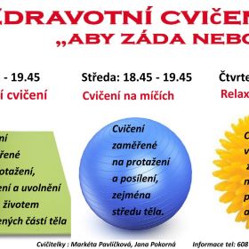 Zdravotní cvičení jako takové zahrnuje různé pohybové aktivity zaměřené na zlepšení zdraví, pohybových schopností a celkové pohody. Toto cvičení se dá využít pro prevenci různých zdravotních problémů, jako jsou bolesti zad, kloubů, srdečně-cévní onemocnění nebo obezita. Ve cvičení používáme prvky z Pilates a Kalanetiky. V rámci jednoduchých pozic a cviků zpevňujeme, formujeme a protahujeme tělo. Pomáháme vyrovnat svalové dysbalance, posilujeme ochablé svaly a protahujeme ty svaly, které máme zkrácené. Většinu cviků je možné provádět s různým stupněm obtížnosti, podle kondice nebo aktuálního stavu cvičenky. Cvičení pomáhá uvolnit nejen tělesné, ale i duševní a emoční napětí, snižuje tak negativní účinky stresu a únavy a jiných nevhodných vlivů běžného dne.